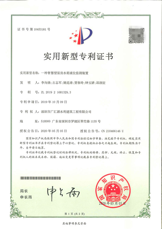 一種智慧型泵房水箱液位檢測裝置